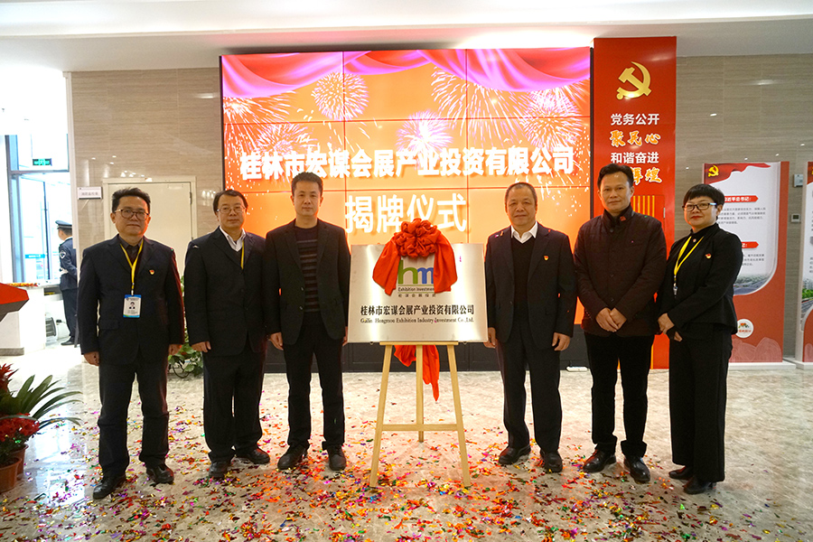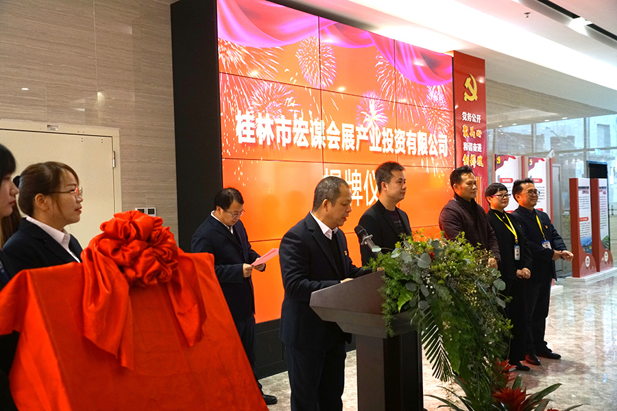 12月24日上午,在新城投資集團一樓舉行了桂林市宏謀會展投資有限公司(以下簡稱宏謀會展公司)揭牌成立。臨桂新區(qū)工委委員、管委會副主任文杰,新城投資集團黨支部書記、董事長周道林揭牌并致辭?;顒佑尚鲁峭顿Y集團副總經(jīng)理鄭善華主持,集團主管以上干部職工參加。