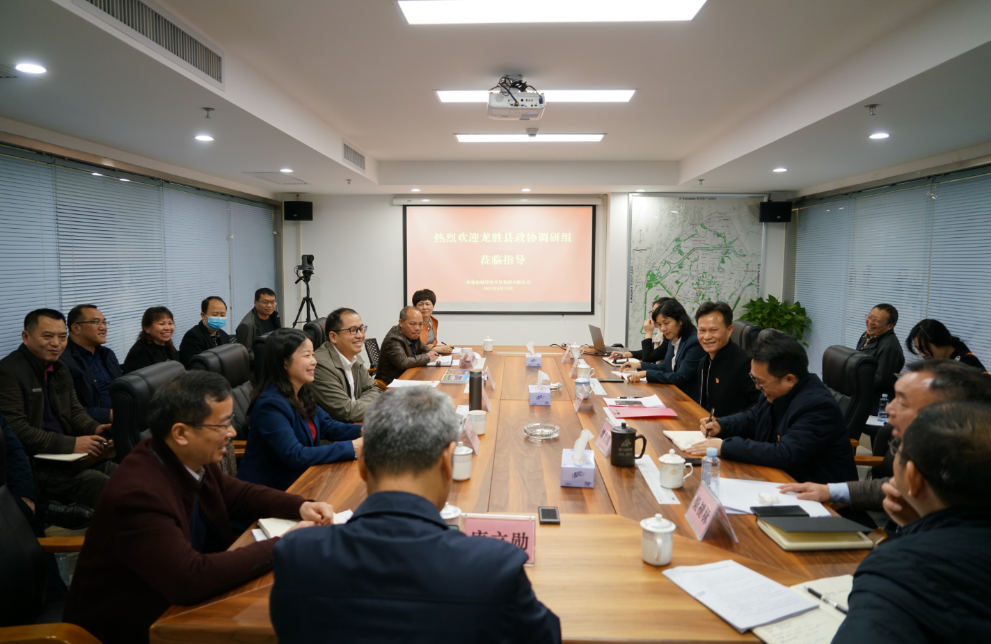 4月12日,龍勝縣政協(xié)主席楊桂姬帶領(lǐng)調(diào)研組在臨桂區(qū)政協(xié)主席李先贈(zèng),臨桂新區(qū)工委委員、管委會(huì)常務(wù)副主任李星明的陪同下蒞臨桂林新城投資集團(tuán)開展國(guó)有平臺(tái)公司市場(chǎng)化轉(zhuǎn)型工作學(xué)習(xí)調(diào)研。