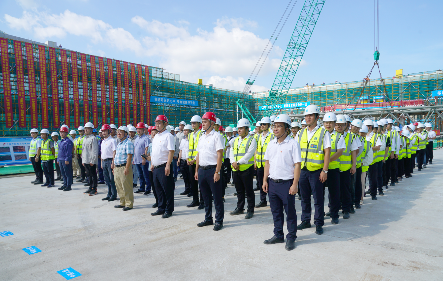 隨后,出席活動領(lǐng)導(dǎo)來賓集體觀摩鋼結(jié)構(gòu)首吊,參觀標(biāo)準(zhǔn)展廳。